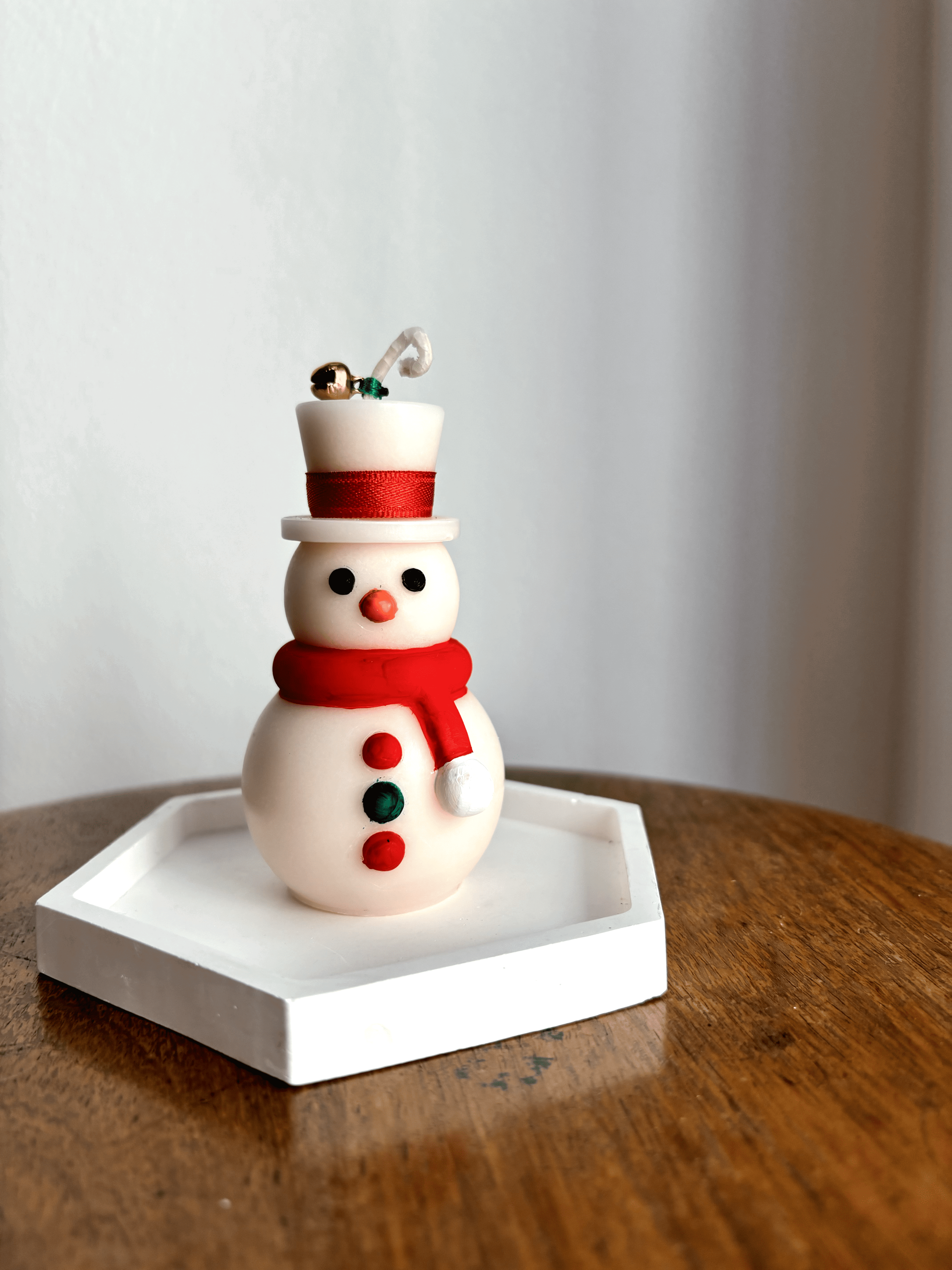 Nuestra vela con forma de muñeco de nieve combina la suavidad de la luz cálida con la magia del invierno. Sus detalles delicados y su diseño adorable transforman cualquier espacio en un rincón acogedor, armonioso y lleno de encanto festivo.